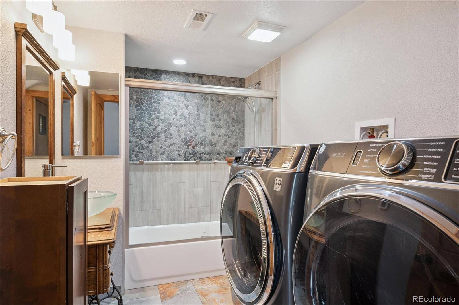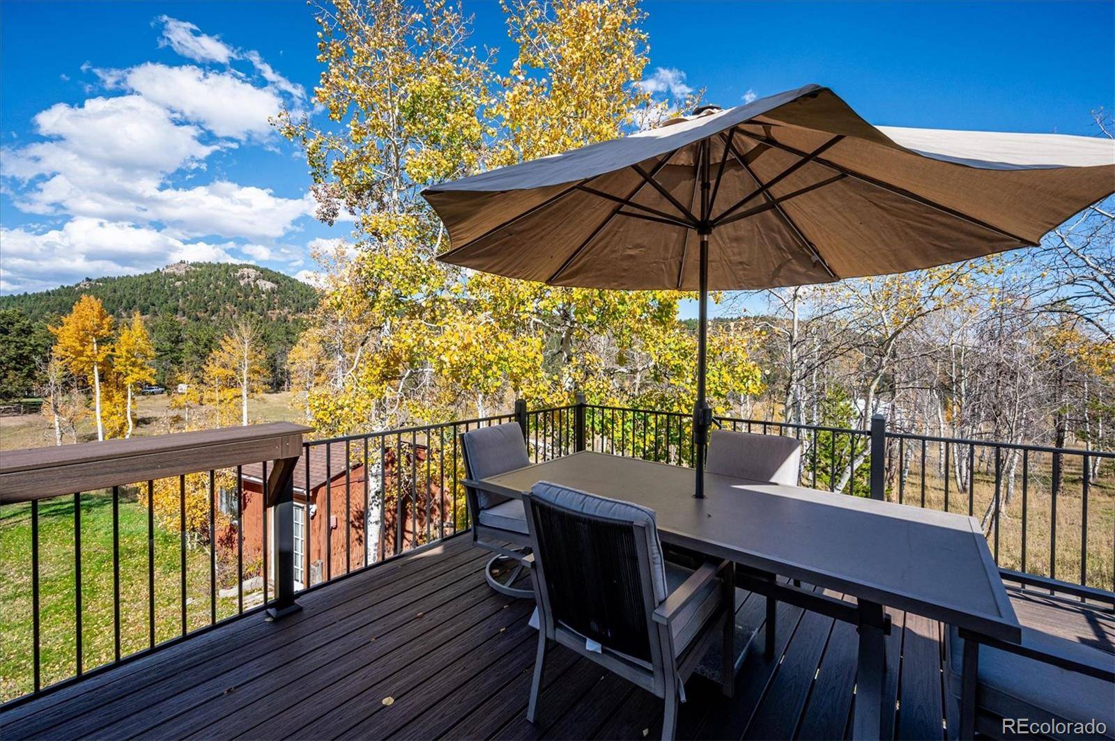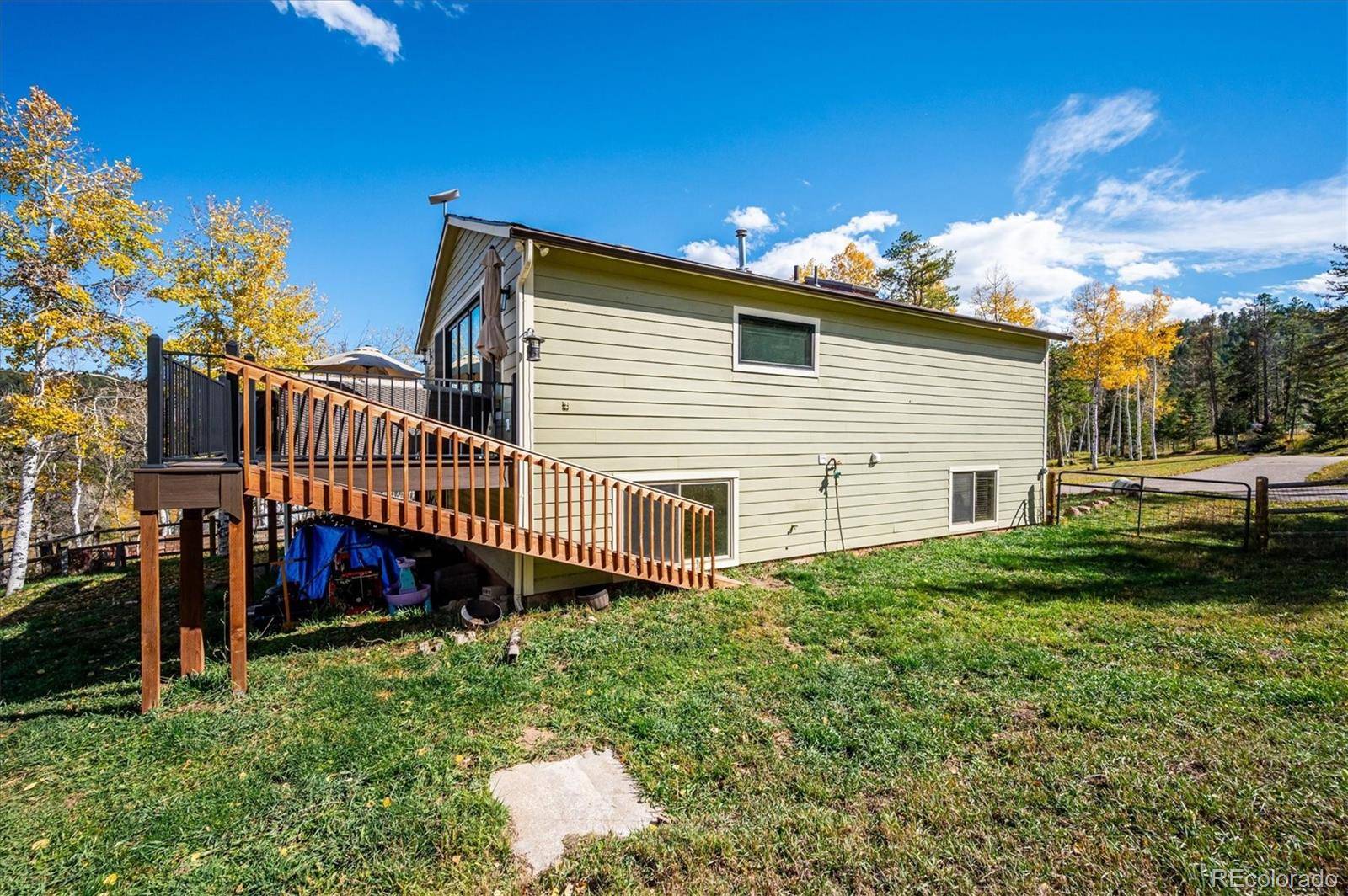 Nestled among the Aspens in the highly sought-after community of Silver Ranch Estates, this stunning home offers the perfect blend of comfort, style, and breathtaking natural beauty. Located on a quiet cul-de-sac, you'll enjoy peace, privacy, and unmatched 360-degree mountain views that make this property truly one of a kind. The bright, open-concept kitchen is ideal for entertaining, featuring a spacious island, stainless steel appliances, soft-close cabinetry, granite countertops, a charming farmhouse sink, and plenty of natural light. The adjacent great room showcases soaring tongue-and-groove vaulted ceilings and a cozy, yet expansive atmosphere perfect for gatherings or quiet evenings. Open the impressive wall of glass bi-fold doors to seamlessly extend your living space onto the expansive deck—perfect for taking in the views or enjoying Colorado's fresh mountain air. When the weather turns, head downstairs to the covered patio with a rain-free roof system, allowing you to stay outside and dry no matter the forecast. Warm up during snowy winter nights by one of the two highly efficient wood stoves, which also help significantly reduce heating costs. Additional energy-efficient features include new windows upstairs, a tankless hot water heater, and ceiling fans throughout. This home was built with long-term durability in mind, featuring impact-resistant shingles and cement board siding—features that may qualify for reduced homeowner's insurance premiums. The domestic well (with both UV and canister filters) is permitted for watering a horse or small livestock. Additional features include a reverse osmosis water purification system, paved driveway, and a spacious shed/workshop for all your toys. Don't miss this unique opportunity to own a piece of mountain paradise. Schedule your private showing today!