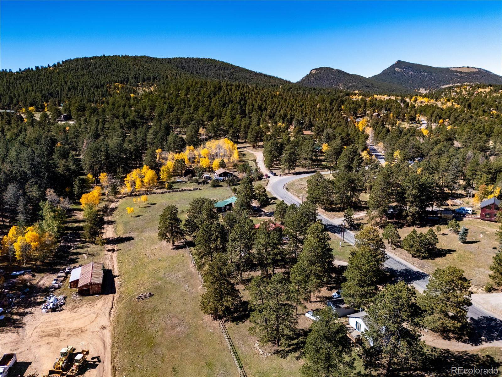 Spacious Main Level Open Concept living with So Much Natural Light! The home is south-facing, maximizing the sunshine. The floor plan is well-thought-out with great utilization of all the square footage. Kitchen is Amazing, the center of this open concept living! Many upgrades to the home include: new natural gas range, new farmhouse sink! Other appliances are newer (2-3 yrs) dw, W&D. Upper level has new LV flooring and the high efficiency boiler is new. New carpet in 2023. The balcony deck wraps around 3 sides of the home, allowing you to enjoy sun & shade throughout the entire day! Perfect for entertaining, cookouts, while watching the wildlife, deer, elk, turkeys, hawks, humming birds passing through the property. The full finished lower level offers a Primary Suite with access to the full bathroom with jetted spa tub, 2 large closets, one walk-in. Lower level also offers: office/ gym, a non-conforming bedroom, large great room or flex space, currently a home office. This is a full-acre gently sloping corner lot with a fenced-in garden area, easy access to the mailbox. Huge benefit is a four-car garage with an attached shed. RV Parking with at least 2+ additional parking spots. Ideally located minutes from Hwy 285, Bailey and Conifer. If you are an outdoors enthusiast, this is perfect location for you! Hiking, mt. biking, fishing, hunting, Staunton State Park all within minutes of this property! From Bailey, you are just over an hour to Breckenridge and the iconic Summit County Ski areas! Heading down the hill, you are less than twenty minutes from Conifer, King Soopers & Safeway grocery stores, and 35-40 minutes to the Denver metro areas. Just 3 minutes to the nearest Dollar General, gas station, and vet clinic.